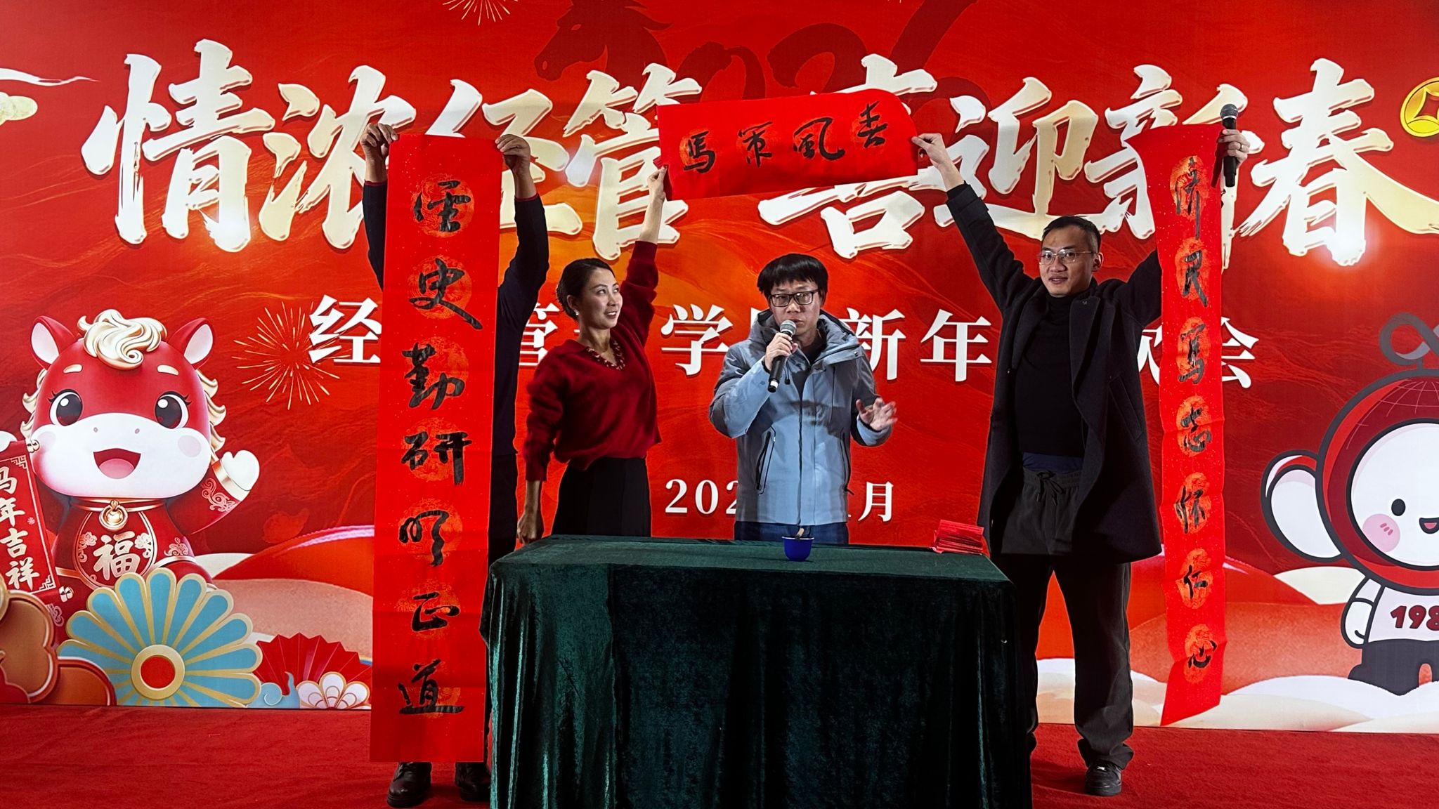 经济管理学院举行“情浓经管 喜迎新春”新年联欢晚会 1月22日晚,经济管理学院“情浓经管 喜迎新春”联欢晚会在西径食堂三楼温情启幕,学院全体教职工欢聚一堂,共迎新春。副校长杨圆华应邀出席。联欢会内容丰富,形式多样,以歌舞相声、戏曲小品、魔术脱口秀等多元艺术形式,充分展现了经管人团结奋进、昂扬向上的精神风貌。晚会以院办教师《抖舞串烧》拉开序幕,动感的节奏瞬间点燃全场气氛。企管学科独唱《我怀念的》、管工学科独唱《任时光匆匆流走》、院办独唱《我是一只小...