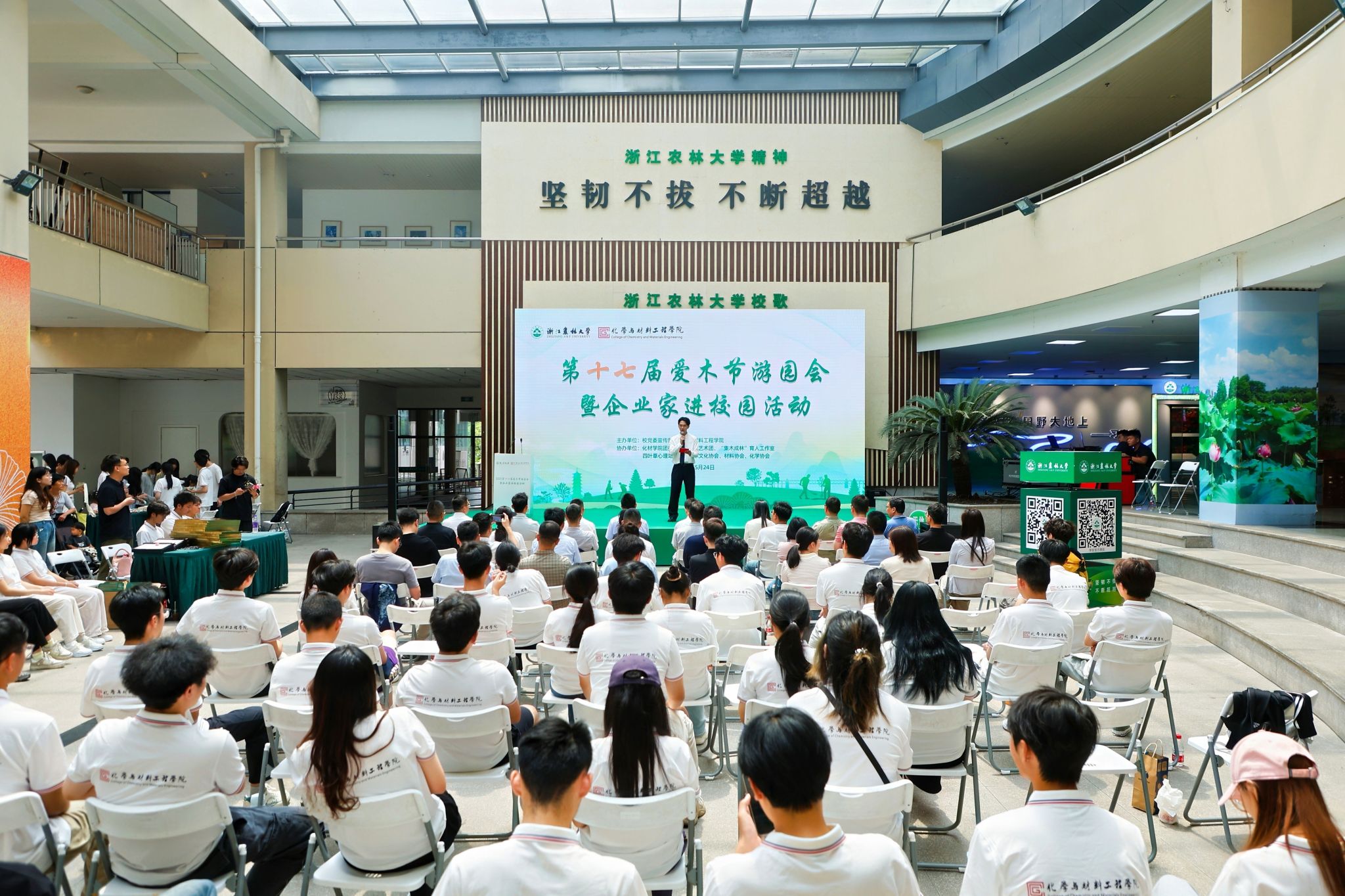 5月24日,化材学院在东湖校区活动中心举办企业家进校园活动。校党委宣传部、学工部、团委等部门负责人,学院班子、企业家代表和师生代表100余人参加活动。