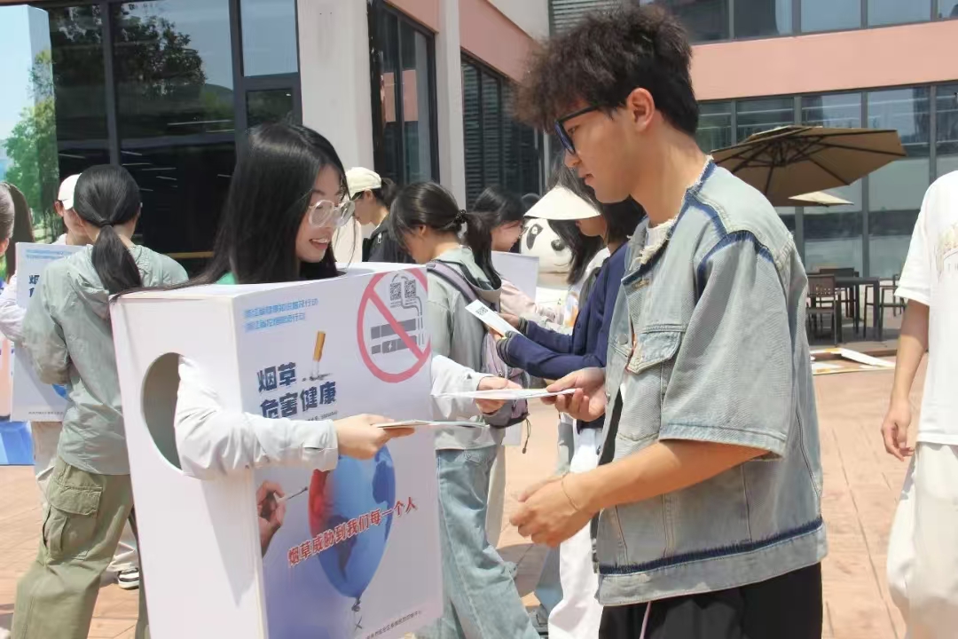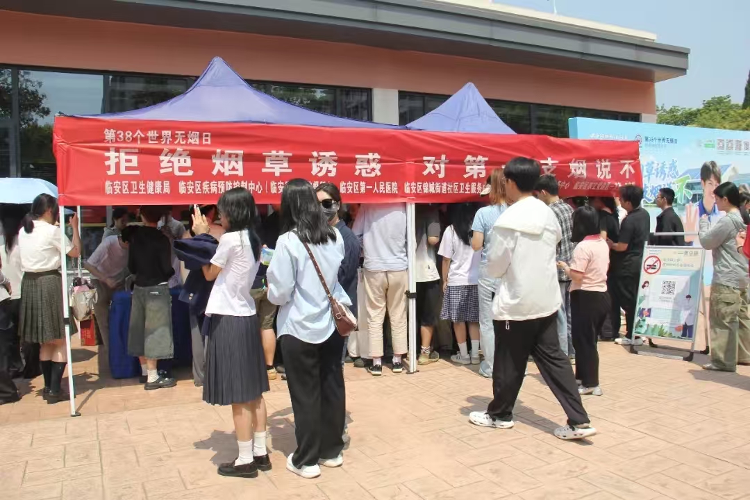 5月30日,第38个世界无烟日主题宣传活动在东湖校区举行。活动以“拒绝烟草诱惑、对第一支烟说不”为主题,由临安区卫生健康局主办,开云电竞s13、临安区疾病预防控制中心(临安区卫生监督所)承办,临安区第一人民医院、临安区锦城社区卫生服务中心、临安区锦北社区卫生服务中心协办。