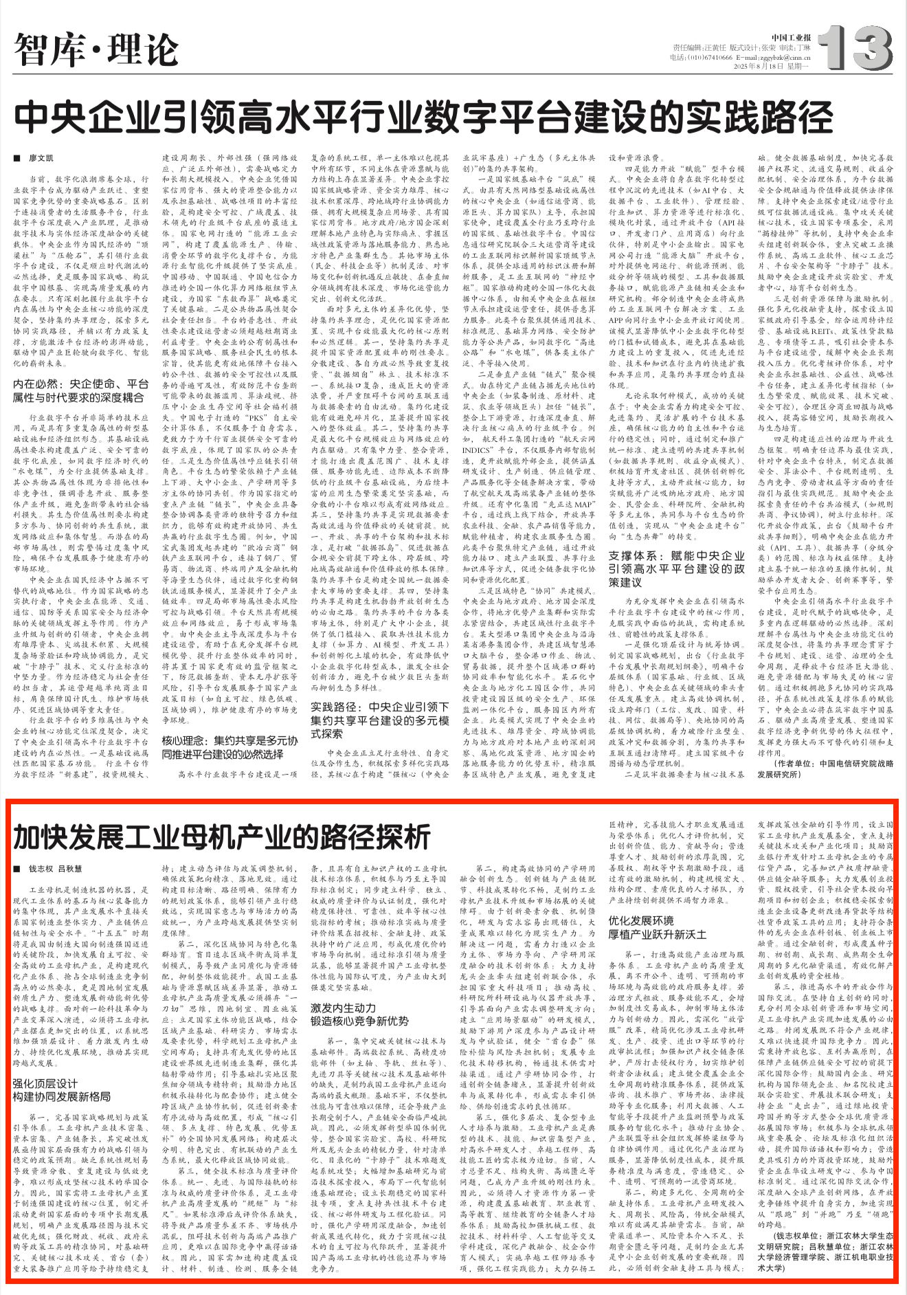 2025年8月18日,浙江省新型重点专业智库——开云电竞s13生态文明研究院副院长钱志权和开云电竞s13经济管理学院博士研究生吕秋慧撰写的理论文章《加快发展工业母机产业的路径探析》发表在《中国工业报》上。现将全文转载如下: