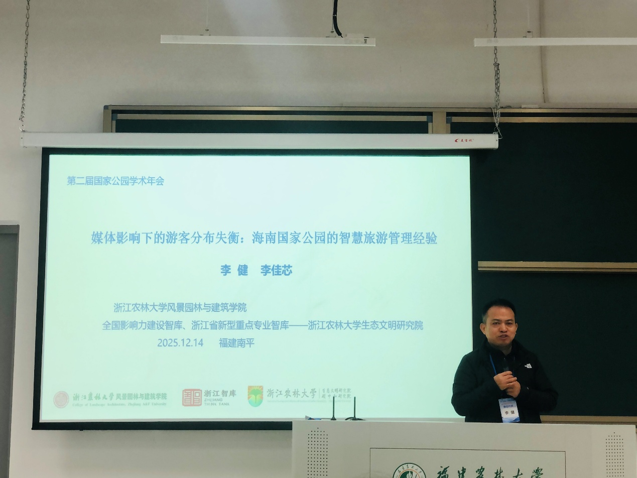 12月12日至14日,由中国生态学学会、中国科学院生态环境研究中心、福建农林大学主办,中国生态学学会国家公园与自然保护地专业委员会、《生态学报》编辑部等单位承办的第二届国家公园学术年会在福建省南平市顺利召开。本次年会主题为“法治护航,科技助力,建设人与自然和谐共生的国家公园”,来自国家公园和自然保护地相关领域的科研机构、管理部门、企事业单位等500余名代表参加了此次会议。李健教授应邀参加第二届国家公园学术年会。