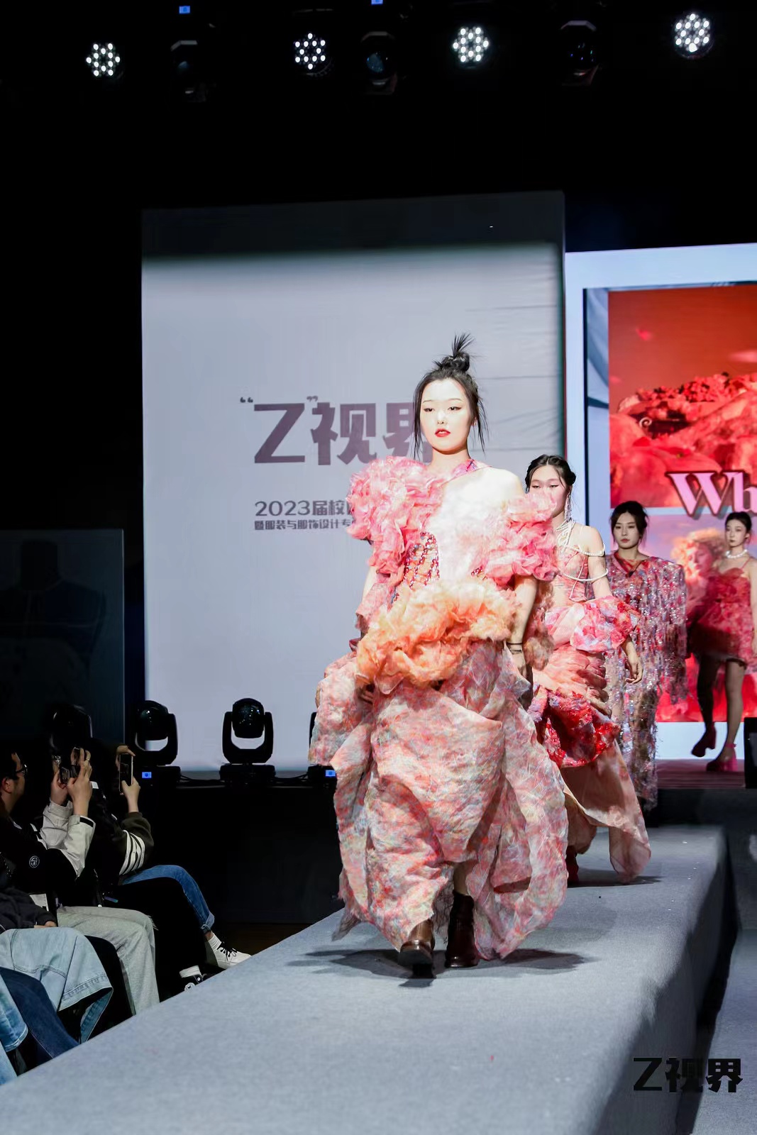 每年毕业季,艺术设计学院服装秀和数媒之夜动态毕业设计展演会都是学校一道靓丽的风景线。服装与服饰设计专业毕业生以多元的视角,将日常专业所学和思考融入生态秀主题当中。学生艺术作品围绕国潮、自然、社会关怀,关注人的心灵慰藉、自然生态与可持续设计,以及数字时代的迭代元素,展开一系列的创作设计,为全校师生呈现了一场具有生态环保数字化意义的视觉盛宴,传达出的审美意识和艺术表达已成为沟通广大学子与服装生态的桥梁。其中,秀场近70位模特来自我校各个专业,在展现青春活力的同时,也身体力行的表达了他们对学校生态环保的支持与认同。