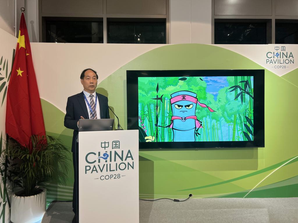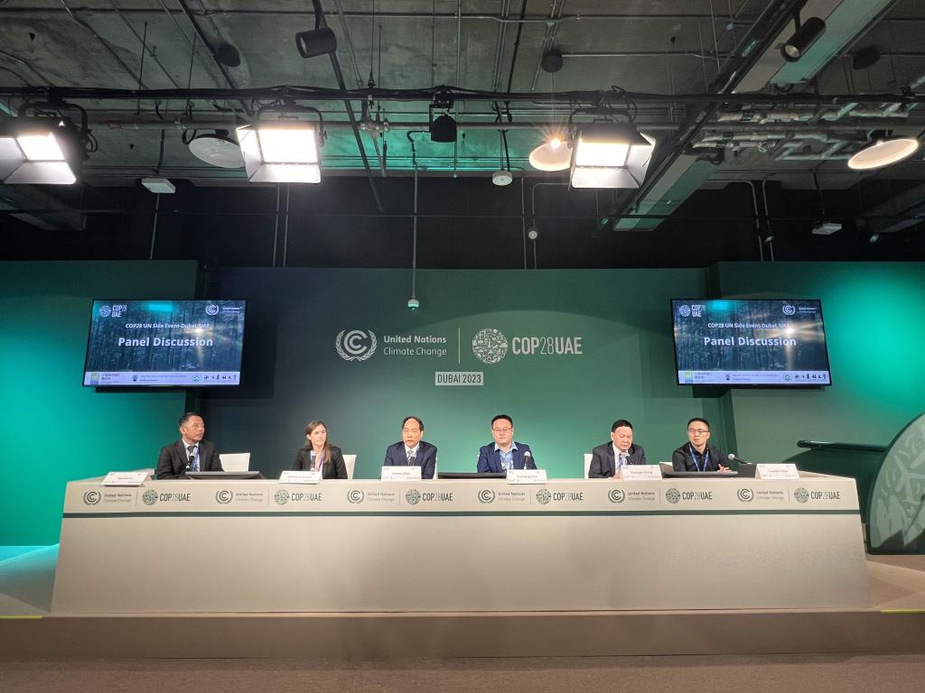 在联合国气候变化迪拜大会上,我校还和中国绿色碳汇基金会、加拿大UBC还联合组织了“林业基于自然的气候变化解决方案:知识与技能的全球对话”边会,来自国内外的林业专家、企业家、政府官员等共同探讨了林业缓解气候变化的现状和趋势。周国模教授在会上进行了绿色创新案例分享,介绍了团队在“以竹代塑”方面的研究成果和推广成效。
