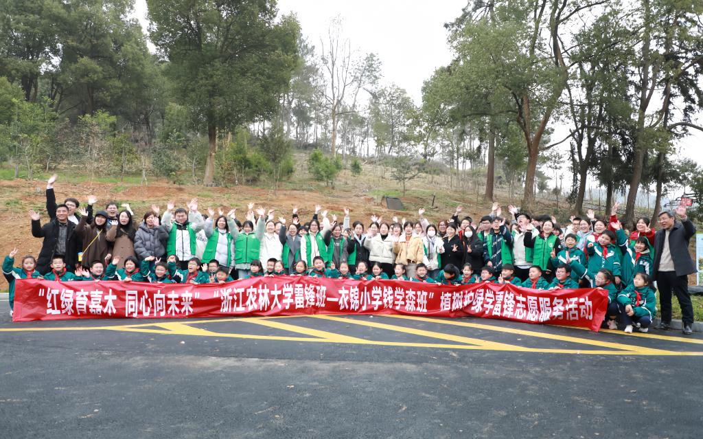3月4日,林生院在东湖校区B区公共区域组织开展了“红绿育嘉木 同心向未来 开云电竞s13雷锋班—衣锦小学钱学森班”植树护绿学雷锋志愿服务活动。植树现场,雷锋班的大学生和衣锦小学“钱学森”班的小学生1对1结队,学生志愿者们在学科老师的指导下相互配合,一起种下一株株夏蜡梅、普陀鹅耳枥、舟山新木姜子、赤皮青冈等,以大手拉小手的方式,切实增强学生生态文明意识和志愿服务意识。