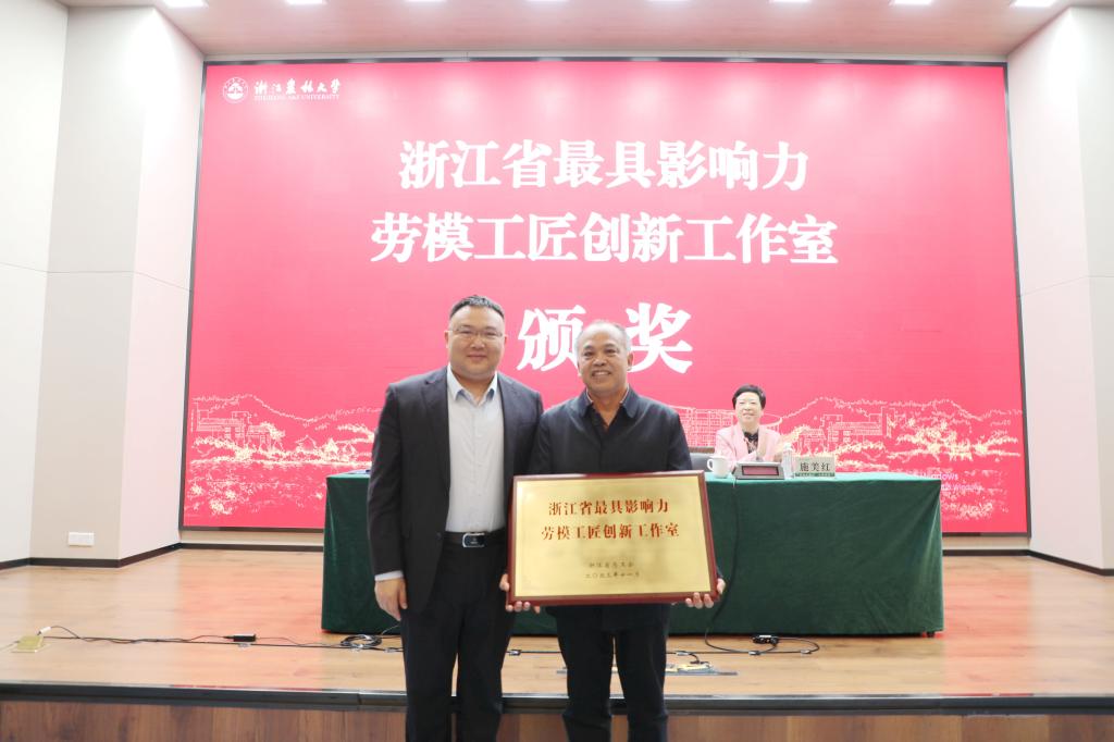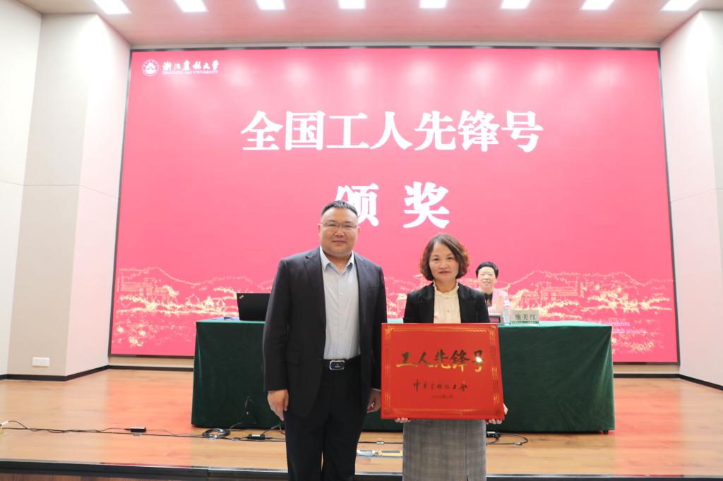 我校林业工程学科被中华全国总工会命名为“全国工人先锋号”,我校劳模工作室被浙江省总工会授予浙江省最具影响力劳模工匠创新工作室。校党委书记朱斌分别为获奖者颁发奖牌和证书。