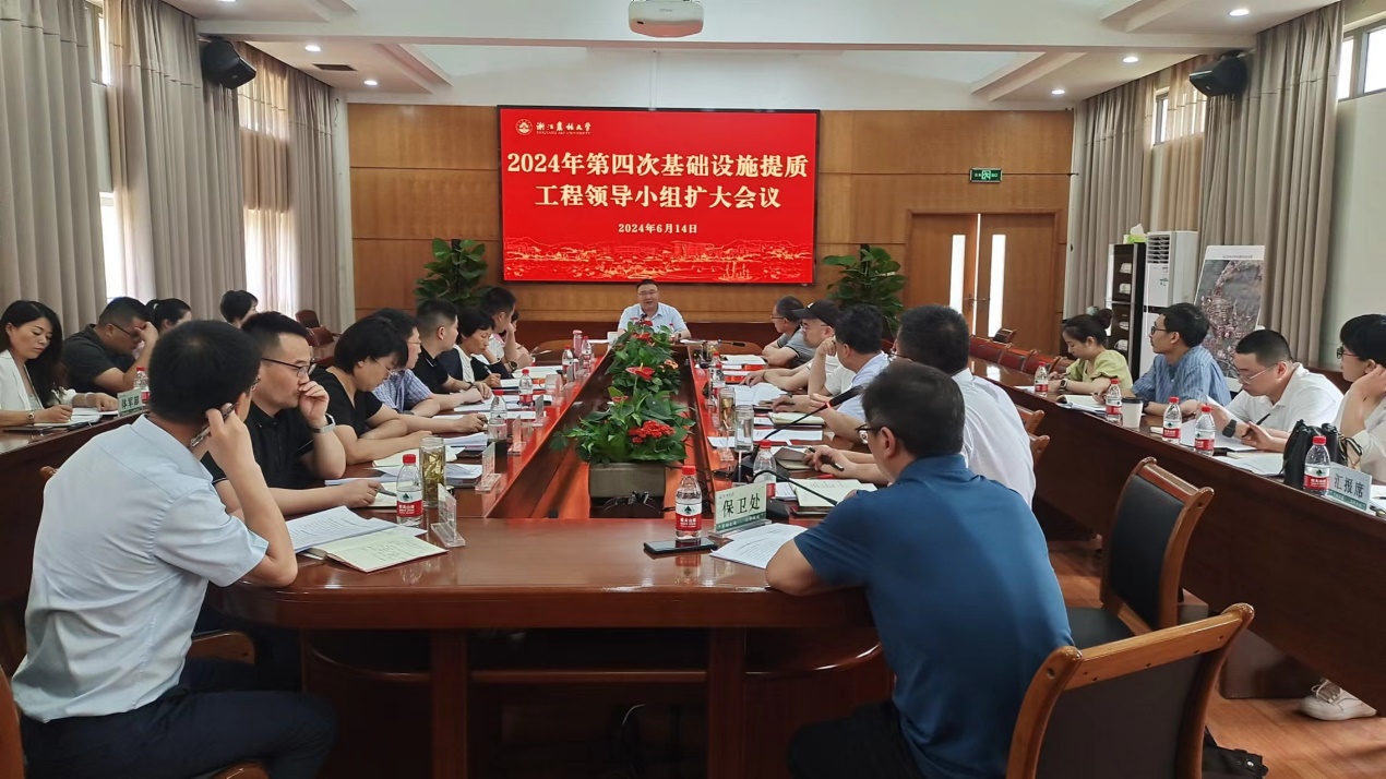 6月14日,校党委书记朱斌主持召开学校基础设施提质工程领导小组扩大会议。校领导班子成员沈月琴、胡祖吉、徐爱俊、包松永出席会议。