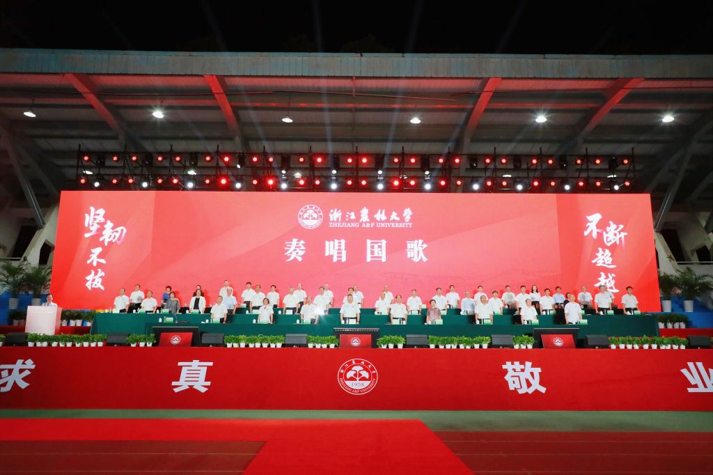 校党政领导班子成员朱斌、施美红、沈月琴、胡祖吉、吴家胜、包松永、刘北东,校党委原书记周国模、沈满洪出席典礼。各学院院长依次上台致辞并入席就座。典礼由校党委副书记倪建均主持。