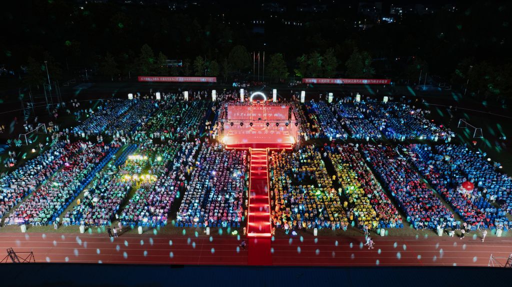 全体2024级新生,国家级人才和省特级专家,相关职能部门负责人,各学院(部)党政负责人,新生辅导员和班主任,在校师生代表10000多人参加典礼。