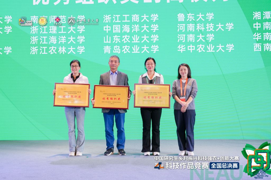9月24日至28日,中国研究生乡村振兴科技强农+创新大赛第四届科技作品竞赛全国总决赛在哈尔滨举行。我校选送的6件作品中共有4项获奖,其中一等奖2项、二等奖1项,三等奖1项。4位老师获评“优秀指导教师”荣誉称号,我校再次荣获“优秀组织单位”荣誉称号。