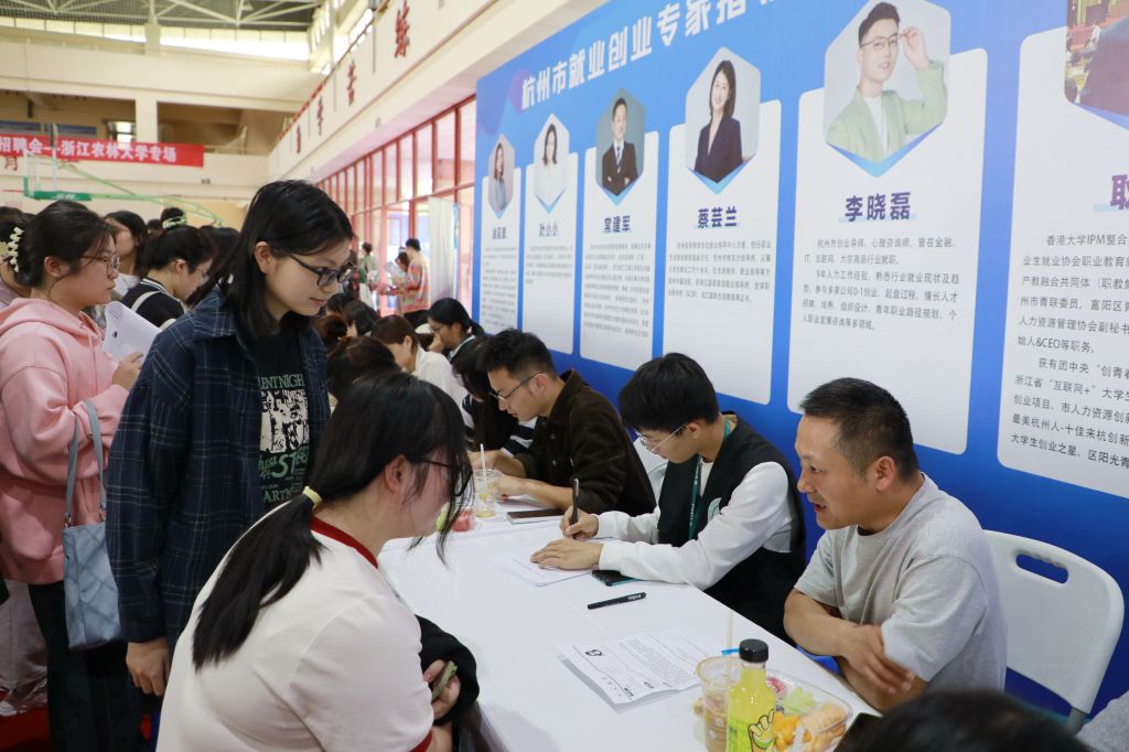 为切实提高毕业生应聘求职能力,学校就业指导服务中心还在招聘会现场设立了杭州市就业创业指导团进校园辅导点,邀请省内高校就业指导老师以及企业代表HR来现场指导毕业生完善简历。他们不仅帮助毕业生们完善简历,还传授实用的面试技巧,让毕业生们在真实的面试场景中更加从容自信。招聘会现场还设立了出国(境)升学、国内升学、考公考编等多个咨询台,引入了 “AI就业导师”的智能化服务,为毕业生们提供了高效、便捷的就业指导。