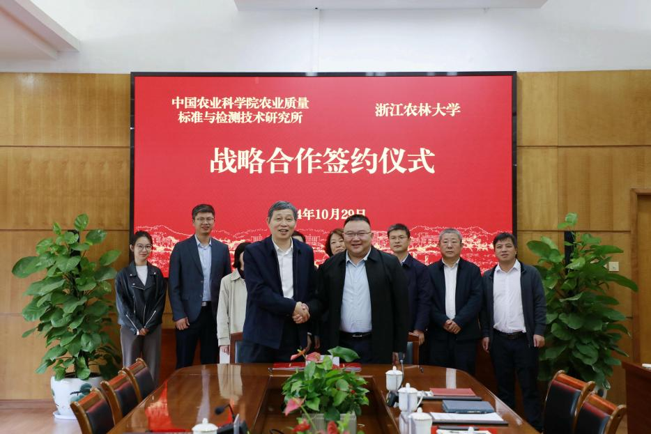 10月29日,我校与中国农业科学院农业质量标准与检测技术研究所全面战略合作框架协议签约仪式在东湖校区举行。