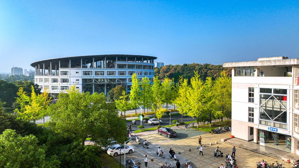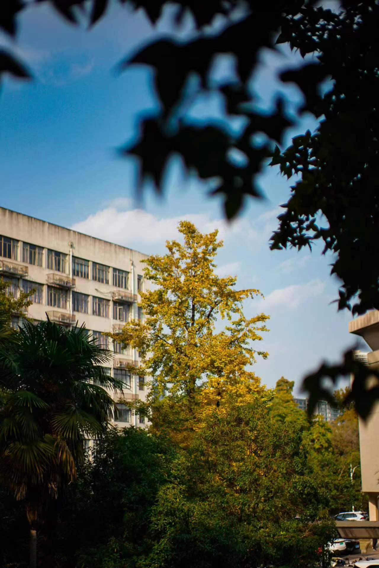 教学楼掩映在银杏之间