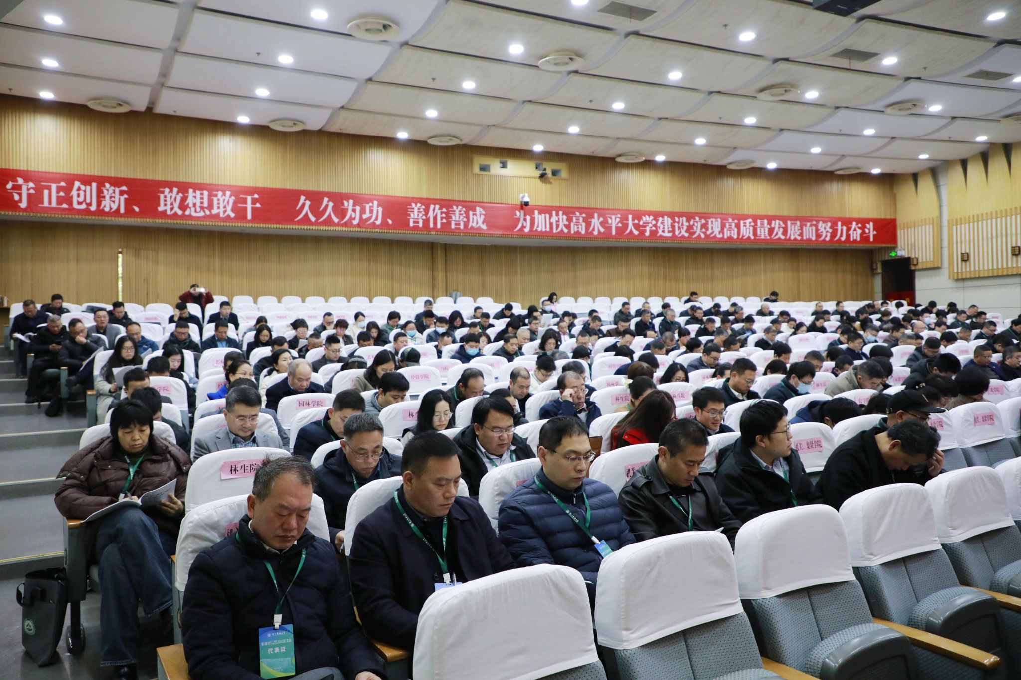 报告全面总结了学校2024年主要工作,部署了2025年重点工作。报告指出,一年来,学校以习近平新时代中国特色社会主义思想为指导,深入学习贯彻党的二十届三中全会精神和习近平总书记考察浙江重要讲话、视察学校重要指示和回信精神,全面落实省委十五届五次全会部署要求,全校师生团结奋进,奋力推进高水平大学建设,取得了一个又一个振奋人心、鼓舞士气的丰硕成果:高质量完成本科教育教学审核评估工作;教师教学创新大赛实现国家奖历史性突破;成功获批森林食物资源挖掘与利用全国重点实验室;生物学与生物化学学科领域新晋ESI全球前1%,植物与动物科学进入全球前2‰,环境/生态学进入全球前3‰;基础设施提质工程建设全面推进;成立全国高校首个“千万工程”研究院;全面深化全省高校党建工作示范高校建设;想方设法提升教职工待遇。