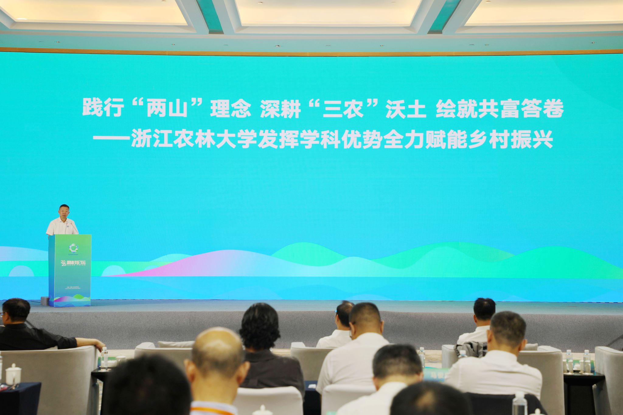 吴家胜以“践行‘两山’理念 深耕‘三农’沃土 绘就共富答卷——开云电竞s13发挥学科优势全力赋能乡村振兴”为题,系统阐释了学校长期以来厚植根基,打造高校服务乡村振兴的“浙农林大方案”;精准发力,赋能高校服务乡村振兴的“浙农林大实践”;总结提炼,贡献高校服务乡村振兴的“浙农林大启示”;展望未来,书写高校服务乡村振兴的“浙农林大新篇章”。在践行“两山”理念的生动实践中,学校探索形成“全校服务全域”的特色模式,用农林学科优势架起校地协同的桥梁,在服务乡村振兴战场上书写了实干答卷。