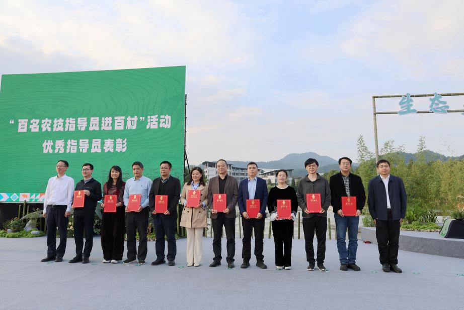 仪式上,表彰了优秀农技指导员,进行了区校合作项目签约。