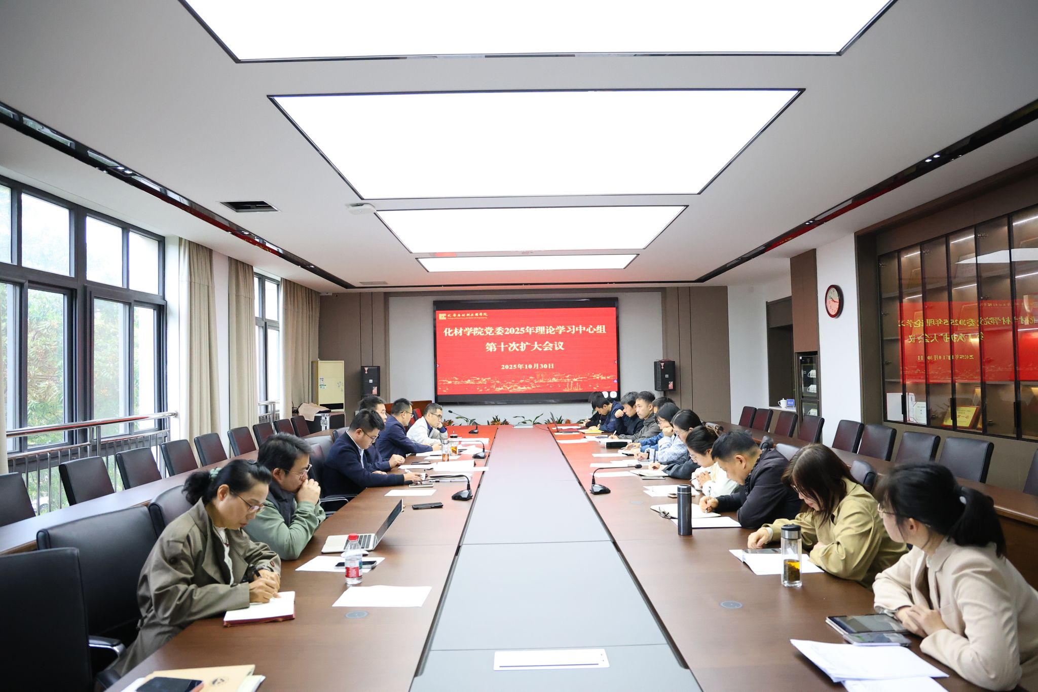 化材学院党委召开党委理论学习中心组扩大会议,要求各支部、各学科、各专业和学位点负责人要先学一步、深学一层,带头组织好宣讲宣传,引导全院师生准确把握“十五五”规划的核心要义,切实把学习成果转化为推动学院高质量发展的实际行动。