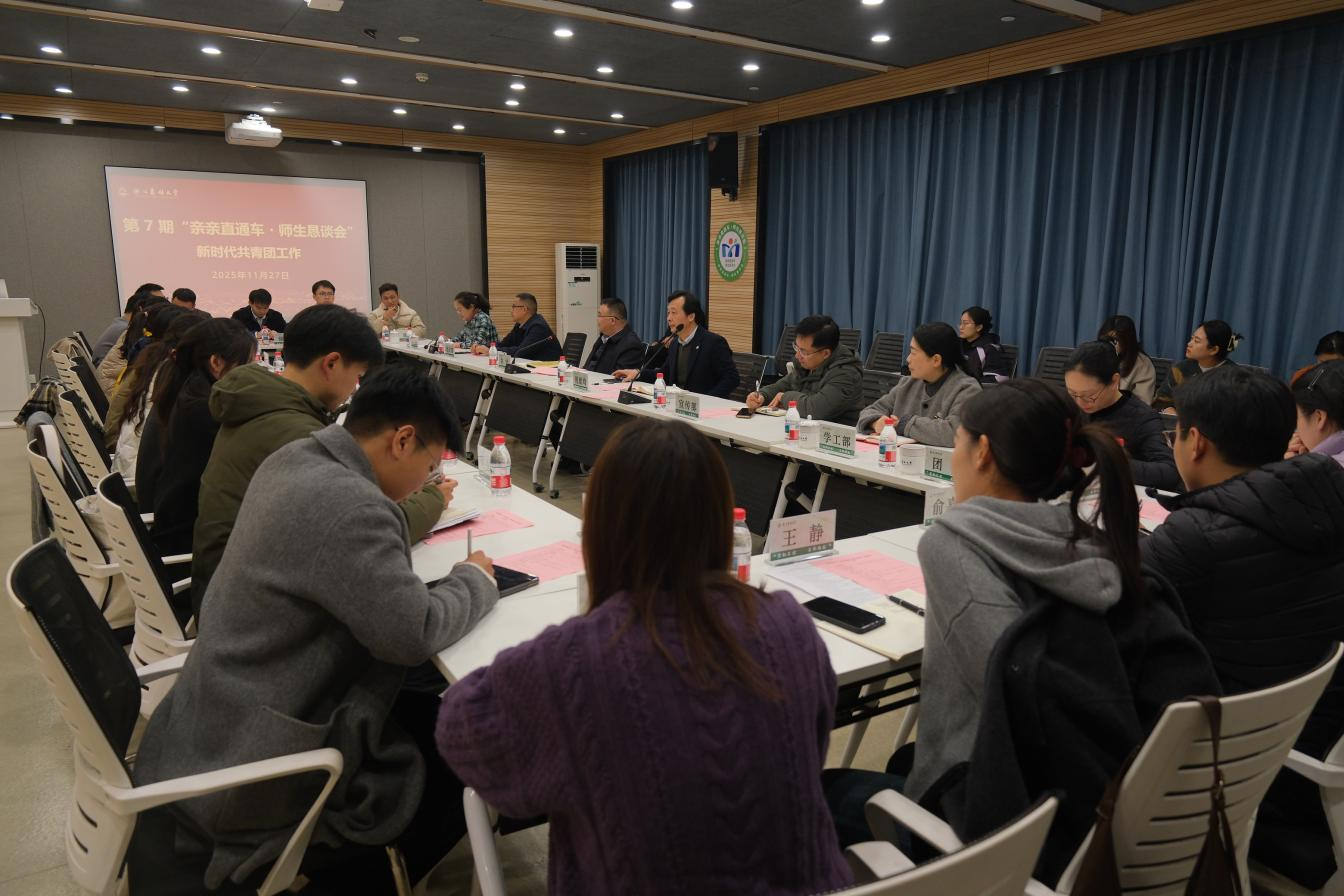 11月27日晚,校党委书记朱斌主持召开第7期“亲亲直通车・师生恳谈会”,与二级团组织书记面对面交流共青团工作,倾听意见建议,共话使命,共谋发展。校党委副书记倪建均出席。