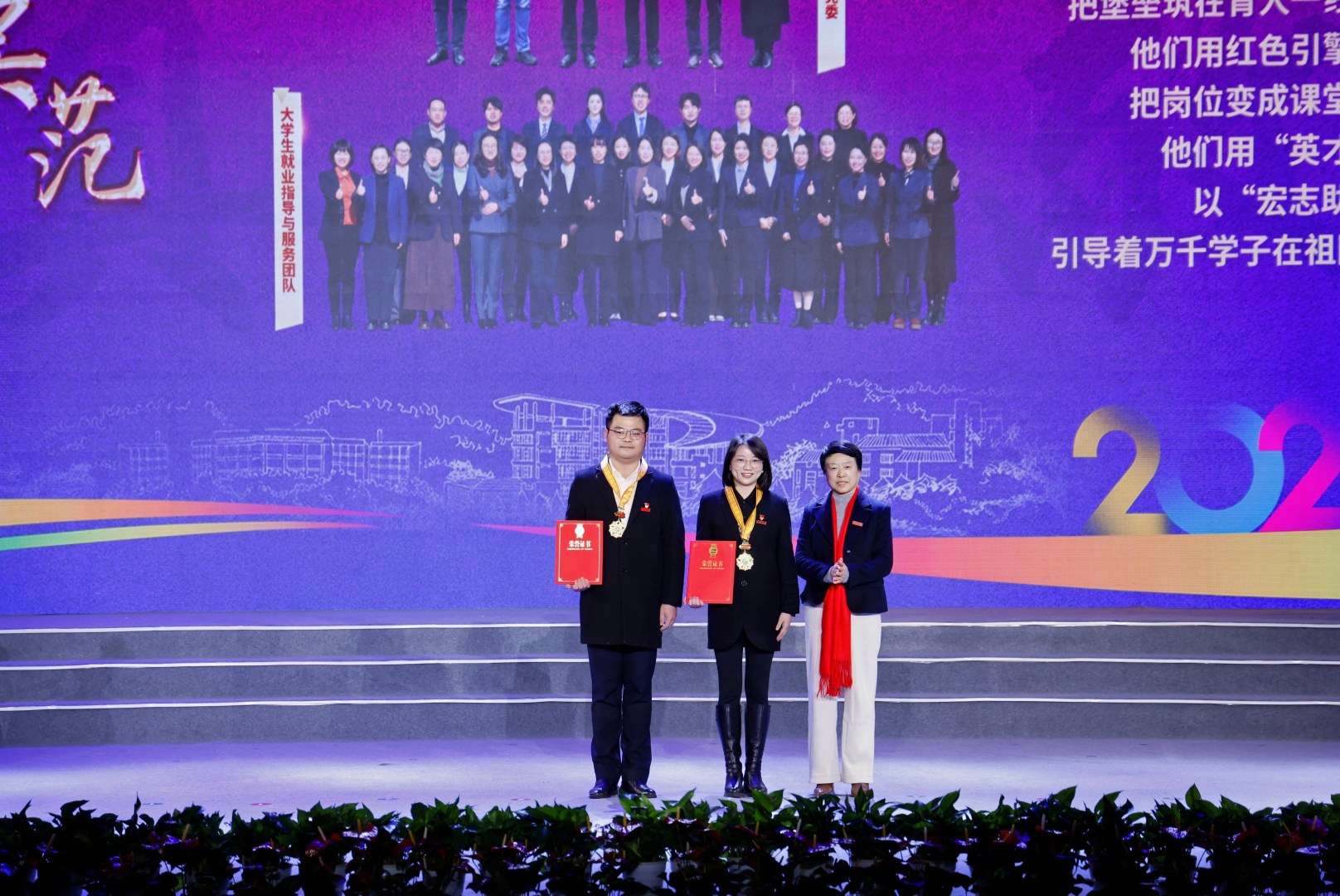 会上,根据新修订的《开云电竞s13荣誉管理条例》,学校对2025年最高荣誉“求真敬业奖”获得者进行了表彰和采访,并授予“银杏勋章”;对“红绿先锋”“桃李模范”“荣誉校友”等荣誉称号获得者和集体进行表彰,并授予“枫香勋章”。