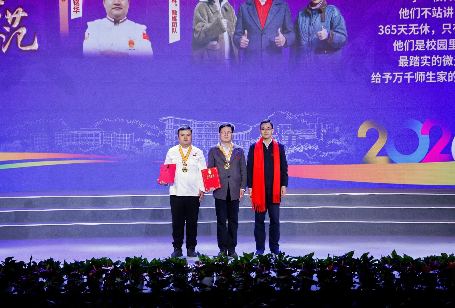 校党委书记朱斌,校原党委书记陈敬佑,校党委副书记施美红,副校长徐爱俊,纪委书记包松永,副校长杨圆华,校党委副书记倪建均,副校长宋厚辉、孙庆丰出席。受表彰的师生、校友以及各部门、各学院负责人,师生代表、校友代表近千人现场参加师生表彰大会暨元旦文艺晚会。