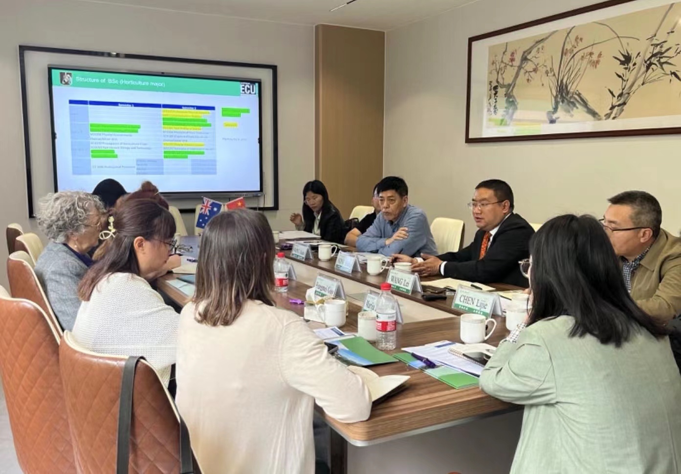 4月25日,澳大利亚伊迪斯科文大学理学院院长Elizabeth Watkin教授、国际部国际关系主任Helen Vella Bonavita、国际部国际合作经理郭凤梅、全球事务拓展与管理经理Marija Petrovska博士一行来校访问。校党委委员、动科动医学院院长宋厚辉,国际处、数计学院、艺术学院和园艺学院等相关负责人与来宾进行了会谈。