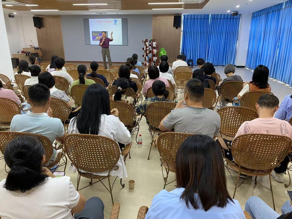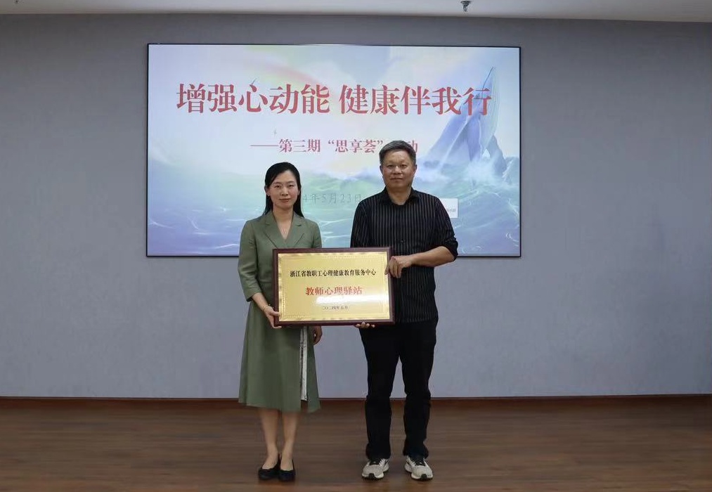 授牌仪式后,举办了以“增强心动能、健康伴我行”为主题的教师“思享荟”活动。浙江财经大学教授、国家二级心理咨询师白羽作了题为《释放压力,提升幸福感——教师压力自我调节》的报告,带领大家重新认知压力,全面解读了开展有效压力管理的策略,重点介绍了认知调节、行为调节、情绪调节、生活调节四方面“与压力共舞”的技巧。老师们在现场体验了经穴敲击放松法、身体扫描放松法、冥想放松法等释放压力的方法,纷纷表示收获颇多,今后将更加理性应对各种压力,以积极健康的心态感知美好、感受幸福,拥抱更加快乐的自己。