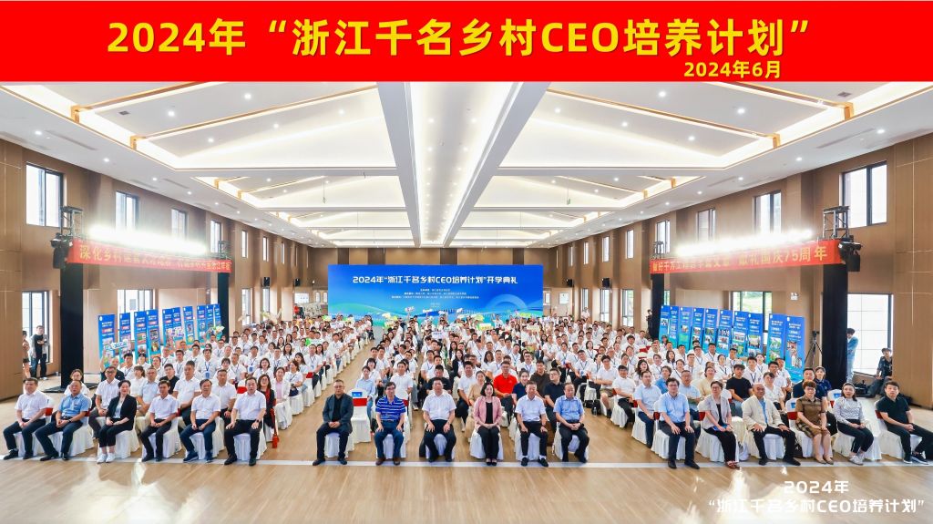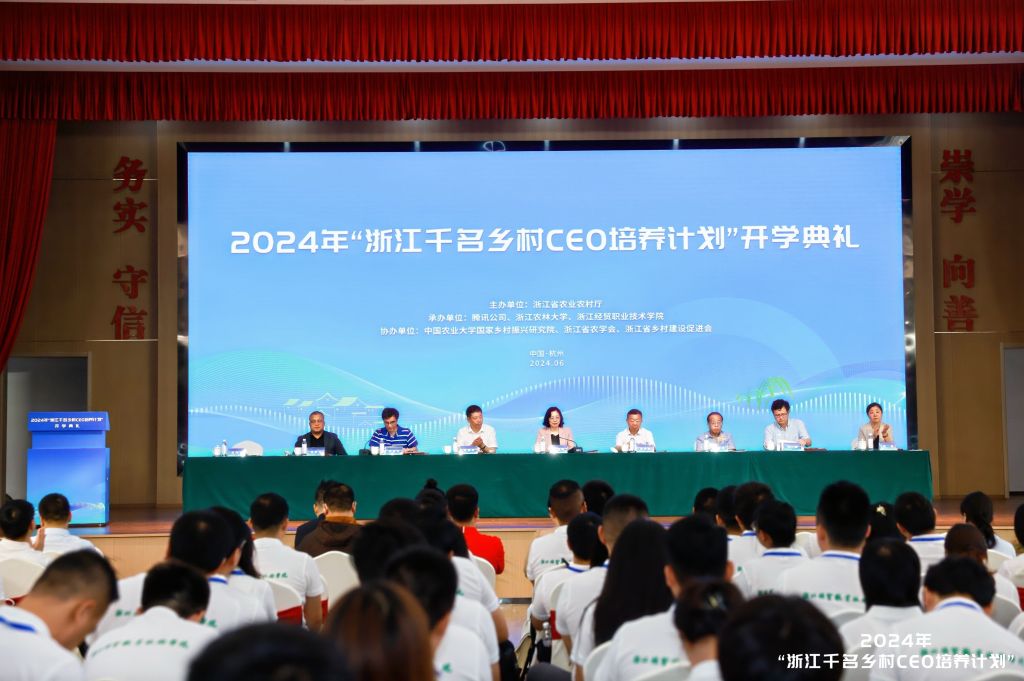 6月28日上午,2024年“浙江千名乡村CEO培养计划”开学典礼在余杭区余杭街道竹园村文化礼堂举行。省农业农村厅副厅长徐燕峰、科教处处长陈百生,我校副校长吴家胜,浙江经贸职业技术学院校长陈德泉,省乡村振兴促进中心主任王健,腾讯公司可持续社会价值事业部副总裁肖黎明,中国农业大学人文与发展学院副院长武晋,余杭区人民政府副区长吴伟强,省高质量发展建设共同富裕示范区咨询委员会委员顾益康出席典礼。
