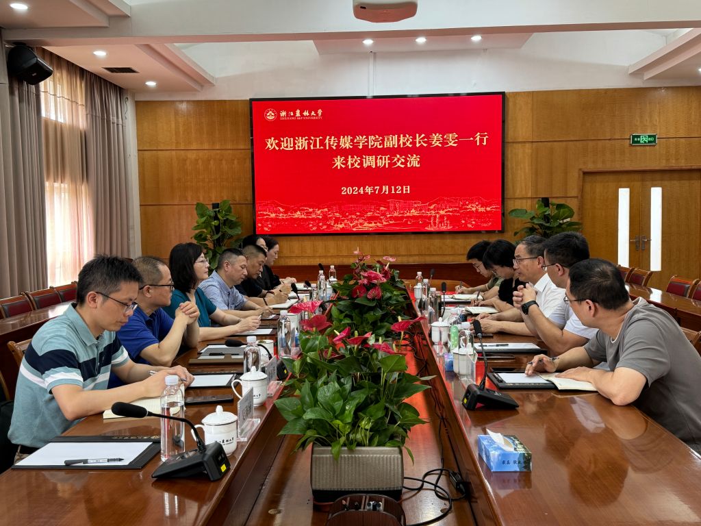 7月12日,浙江传媒学院副校长姜雯一行来校调研交流,副校长胡祖吉陪同调研并主持座谈会。