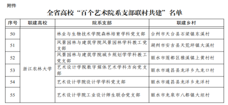 近日,浙江省委教育工委公布了全省高校“百个艺术院系支部联村共建”名单,我校林生院森林培育学科党支部,园林学院风景园林学科教工党支部、城乡规划学学科教工党支部,艺术学院数字媒体艺术学科方向党支部、设计学学科党支部、工业设计师生联合党支部的党建联建项目成功入选。
