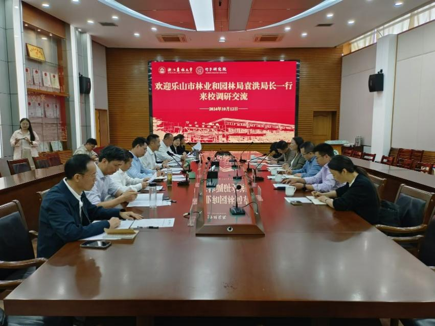 10月12日,乐山市林业和园林局局长袁洪一行来校调研交流,副校长徐爱俊,校原党委副书记、竹子研究院名誉院长方伟陪同调研并座谈。
