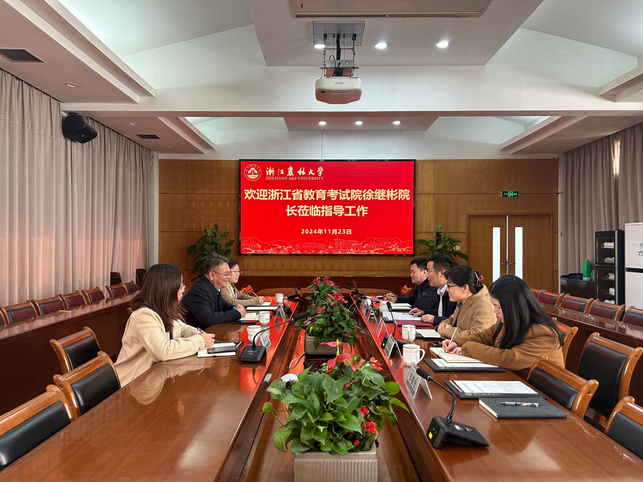 11月23日,浙江省教育考试院党委委员、院长徐继彬一行来校检查指导研究生招生考试自命题工作。副校长徐爱俊主持调研座谈会,研究生院相关负责人参加。