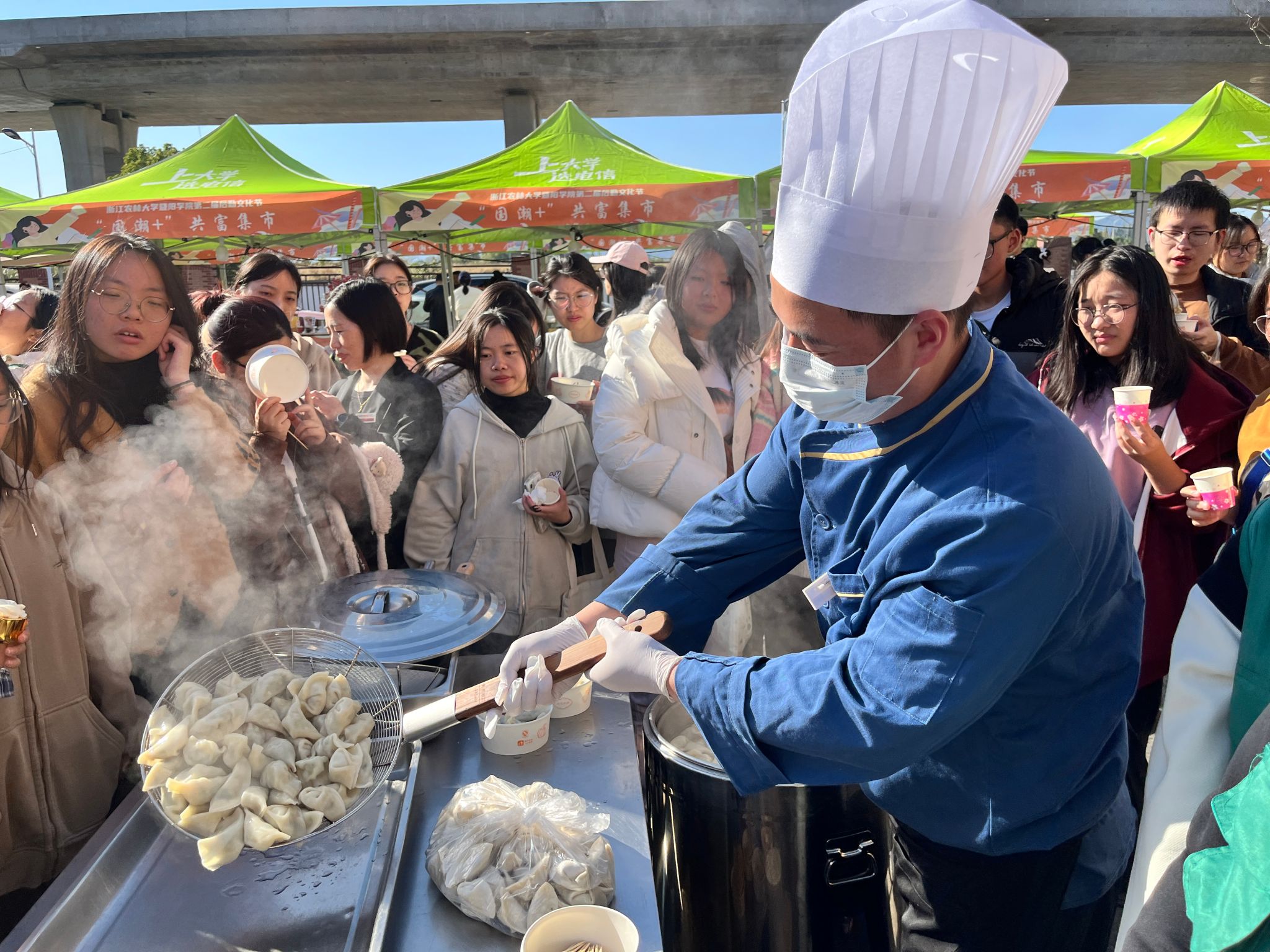 “非遗+”传统美食,邀师生共享一场“烹”然心动的美食盛宴。用“暨阳第一锅”烹饪1300余斤诸暨传统名菜西施豆腐,胡祖吉、斯华民等领导共同为“暨阳第一锅”揭锅,为后勤文化节美食展“开席”。“不时不食,顺时而食”,以二十四节气为时间点,从不同节气的气候特点和时令食材出发,展出二十四道诸暨传统特色美食,搭配具有诸暨人文历史和民俗特色的故事背景,向师生展现了诸暨美食风采和越味美食文化。此外还有来自各食堂、风味档口的招牌菜品、面点、小吃等88种美食供师生免费品尝。