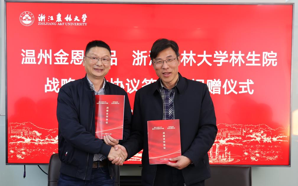 12月2日,林生院与浙江金恩食品有限公司签署战略合作协议。校教育基金会副理事长胡祖吉、浙江金恩食品有限公司董事长潘安钦、总经理郑润,以及校教育基金会秘书长、林生院负责人出席签约仪式。
