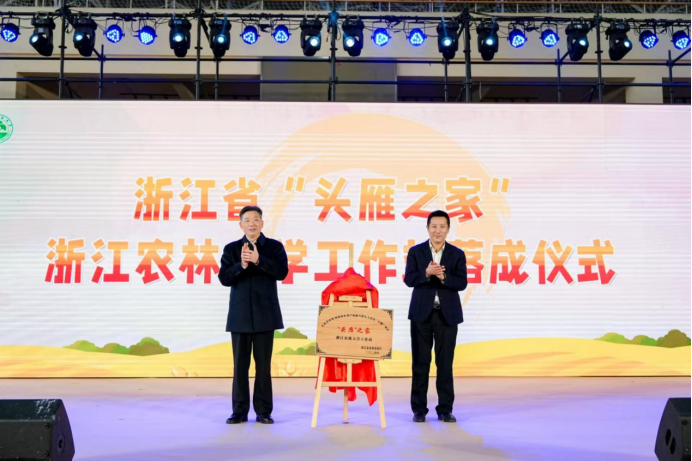 开幕式上,穿越时空的“美食家”--北宋文豪“苏东坡”重游临安,并带来精彩的“头雁兴农梦”舞台剧,用古今结合的方式生动展现了乡村蝶变的壮丽画卷。由我校“头雁”“乡村CEO”学员们发起的“兴农基金”正式成立,并举行了现场捐赠仪式。浙江省“头雁之家”开云电竞s13工作站落成仪式举行,并对11个地市区“头雁之家”工作分站进行了授牌。2024年浙江“千万工程”讲解员比武大赛一等奖获得者方泳还进行案例分享,讲述了他在“新宇村”的致富之路,赢得了现场观众的阵阵掌声。