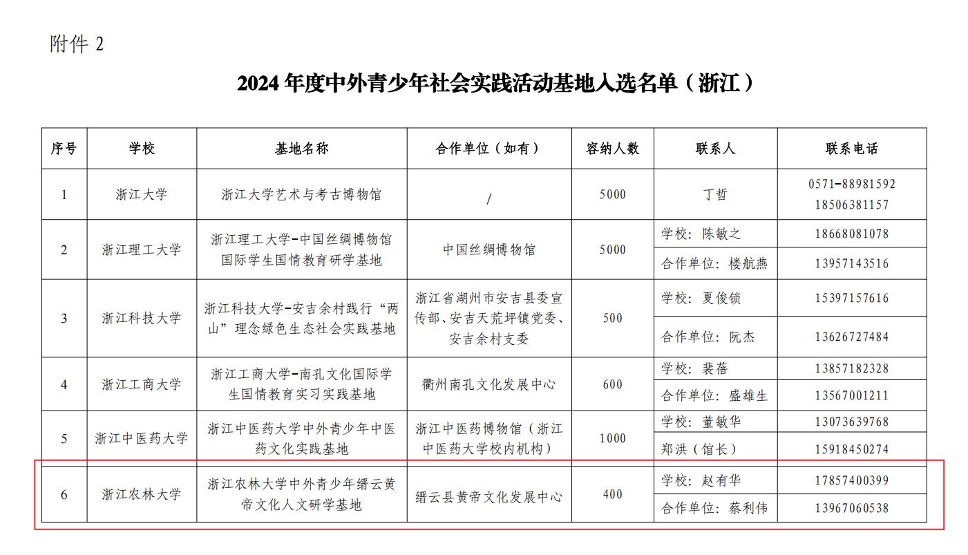 近日,浙江省高等学校国际学生教学指导委员会下发《关于公布2024年度来华留学中国国情教育优秀课程和中外青少年社会实践活动基地入选名单(浙江)的通知》,由教育部国际合作与交流司委托、中国教育国际交流协会组织的全国首批来华留学生中国国情教育优秀课程和中外青少年社会实践活动基地征集工作结果揭晓。我校与缙云县黄帝文化发展中心合作申报的“开云电竞s13中外青少年缙云黄帝文化人文研学基地”入选,成为全国首批115个中外青少年社会实践活动基地之一,标志着我校国际学生国情教育的校地合作迈出了重要一步。