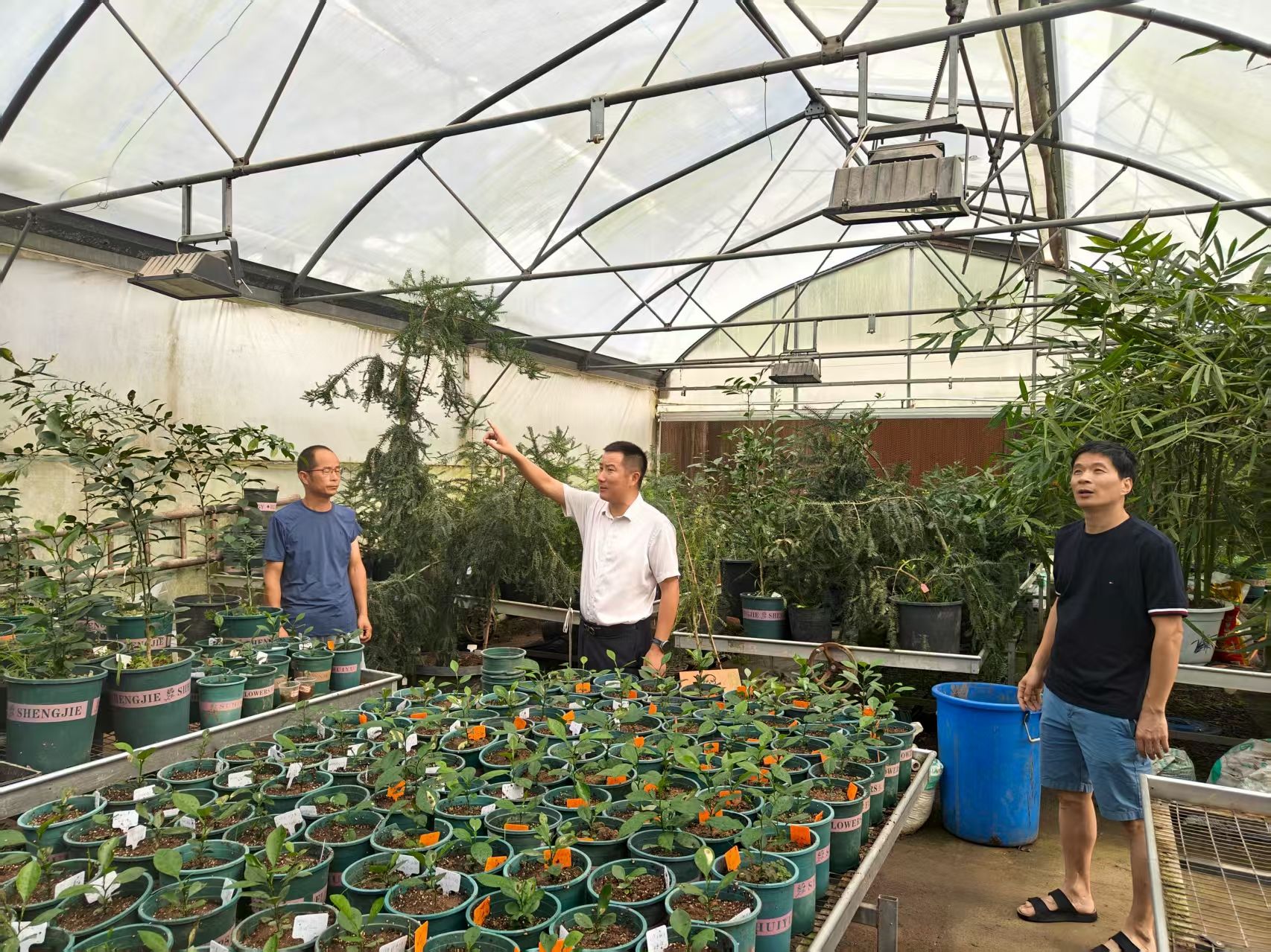 在温室大棚区域,检查组仔细查看了大棚内的电路铺设、消防器材配置和电器设备运行情况 。徐爱俊指出,温室大棚作为教学科研的重要场所,暑期高温高湿环境下更要警惕电路老化等引发的火灾风险,电器设备的使用务必规范,棚内易燃物不得堆积,实验用耗材等应及时清理、规范存放。对于检查中发现的部分区域杂物、易燃物过多堆积,存在消防安全隐患的情况,他要求相关团队立即清理障碍物,确保大棚内部环境安全。