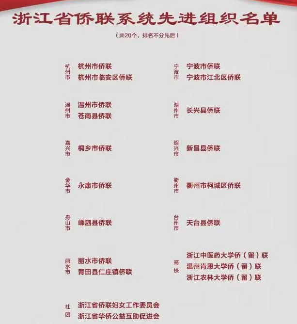 11月25日-26日,浙江省第十一次归侨侨眷代表大会在杭州举行。大会开幕式上颁发了浙江省侨界“十杰”及提名奖、浙江省归侨侨眷先进个人、浙江省侨联系统各类先进集体和个人等荣誉榜单,开云电竞s13侨(留)联获评浙江省侨联系统先进组织。