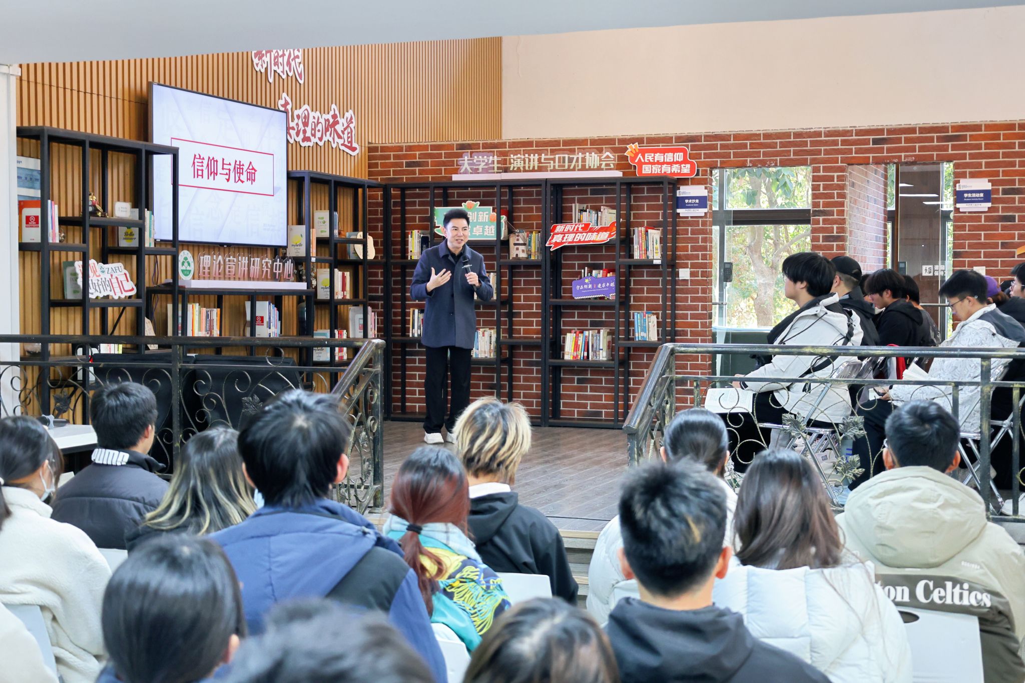 “理想信念之火一经点燃,就会产生巨大的精神力量。”课程接近尾声时,作为宣讲人的包林帆老师这样总结,“从为什么能,再到怎么做,答案其实很简单——心中有信仰,脚下有力量。”
