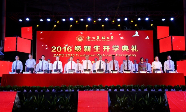 特邀嘉宾浙江经贸职业技术学院院长陈德泉、丽水职业技术学院院长梁伟样,学校有关部门负责人,各二级学院院长、党委(总支)书记、副书记,新生辅导员、班主任,全体2016级研究生、本科生、留学生参加了典礼。