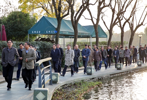 12月1日下午,省委党校2014年第四期领导干部进修一班学员来我校考察。校党委书记宣勇陪同考察。校党委副书记方伟、余杰,副校长王自勇、鲍滨福等分别参加相关考察活动。