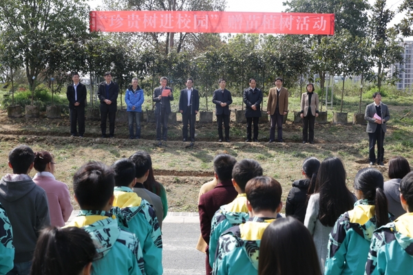 校长周国模代表学校接受了“珍贵树进校园”赠苗清单。此次省林业厅共赠送浙江楠、南方红豆杉、闽楠、浙江樟、红豆树、细柄阿丁枫、赤皮青冈、江南油杉等珍贵树种1万株。