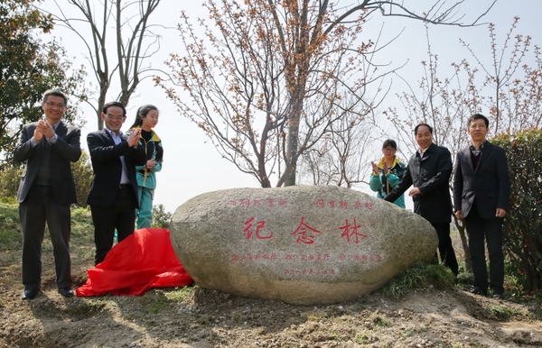 林云举、于永明、宣勇、周国模共同为“共植珍贵树,同育栋梁材”纪念林刻石揭幕,并与师生一起挥锹铲土、填泥浇水,植下一片新绿。