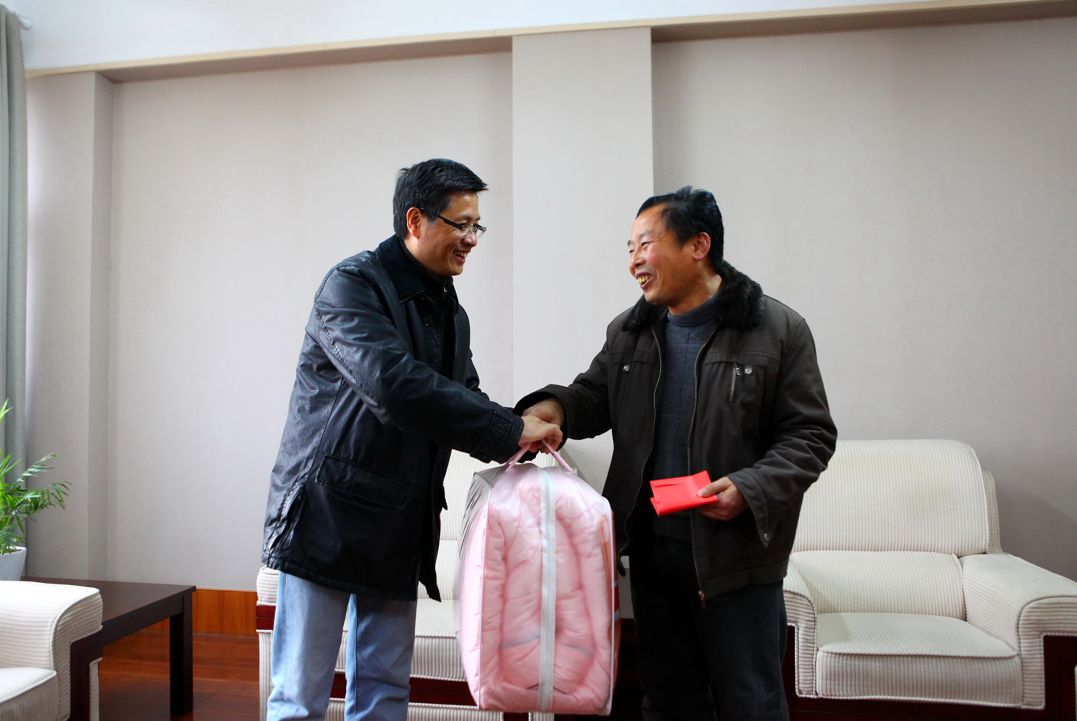 浙农林大新闻网讯 1月11日下午,新春佳节即将来临之际,校党委书记宣勇在校办负责人的陪同下,专程前往杭州华旺纸业集团有限公司看望慰问结对帮扶的困难群众焦新安和蒋建国。宣勇亲切地询问他们的身体状况和生活情况,把慰问金和米、油、棉被等慰问品送到他们手上,并向他们致以节日的问候和新春的祝福。
