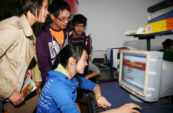 10月19日,经济管理学院的师生,分别围坐在电脑前、教室里,通过网络、党报等媒体学习十七届五中全会精神。