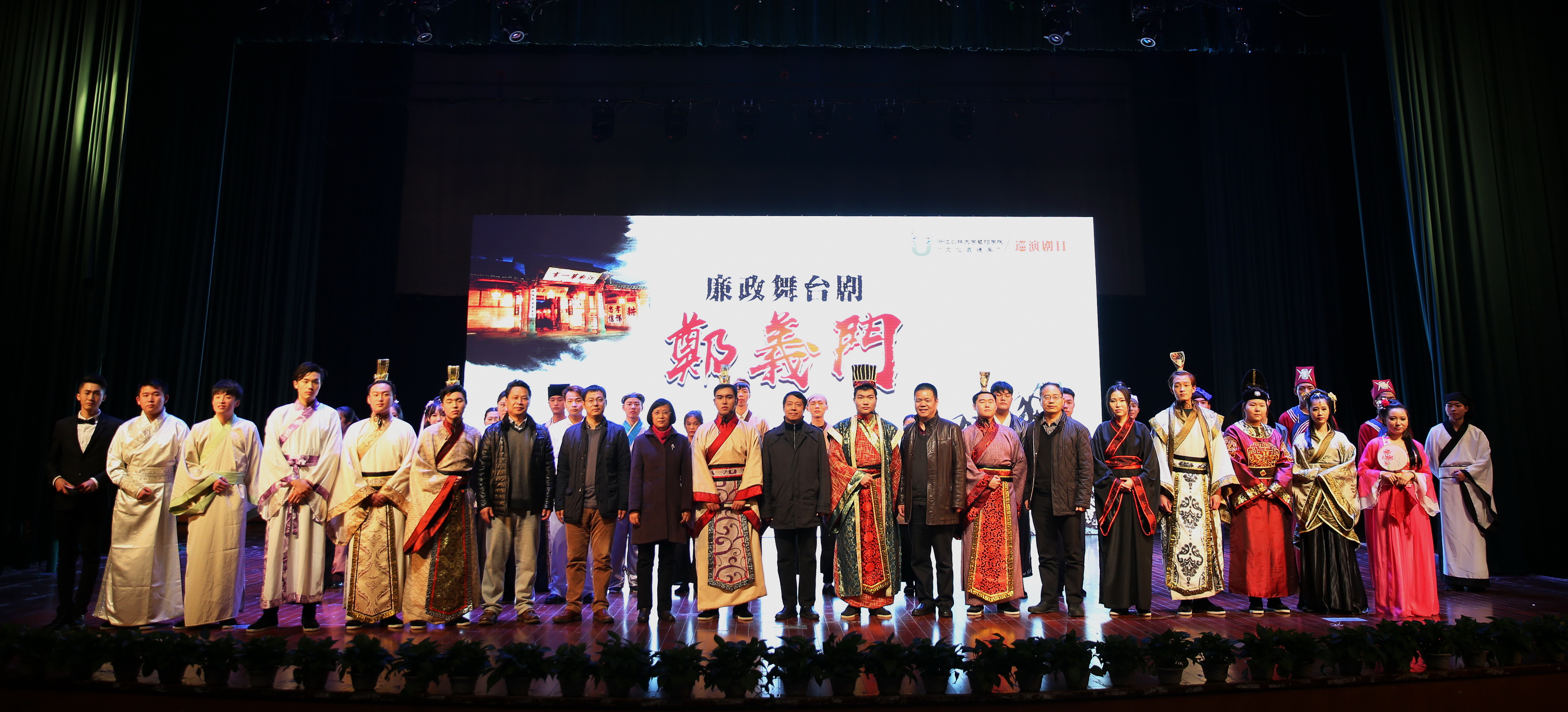 12月18日,由我校暨阳学院学生自编自导自演的大型原创廉政舞台剧《郑义门》在东湖校区影剧院上演。校党政班子成员方伟、史永安、沈月琴、胡祖吉、童晓晖及全体中层干部,党委(总支)委员,各支部书记和委员,师生党员代表,离退休教师代表,民主党派代表共1000多人观看了演出。