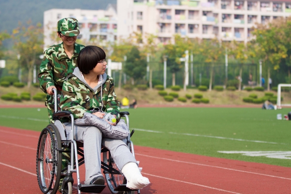 教官教我们叠“豆腐块”被子,寝室里颇有一番军营的味道。