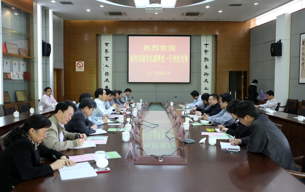 5月3日上午,杭州市副市长戚哮虎率市政府副秘书长赵国钦、市农办、市林水局等相关部门负责人,在临安市政府有关部门负责人的陪同下来校考察。校长周国模、副校长鲍滨福等接待了客人,并与客人们进行了座谈。