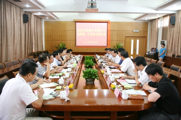浙农林大新闻网讯 8月17日上午,嘉兴市副市长赵树梅一行来校考察交流。校长周国模,副校长鲍滨福,校党委委员、科技处处长陈永富等与赵树梅一行进行了座谈。围绕开展全面深入合作,双方进行了交流并达成共识,希望能尽快开展合作,促进共同发展。