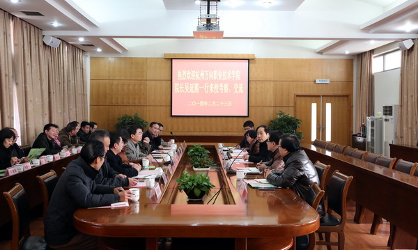 2月23日下午,杭州万向职业技术学院院长吴延熊一行20余人来校考察交流。