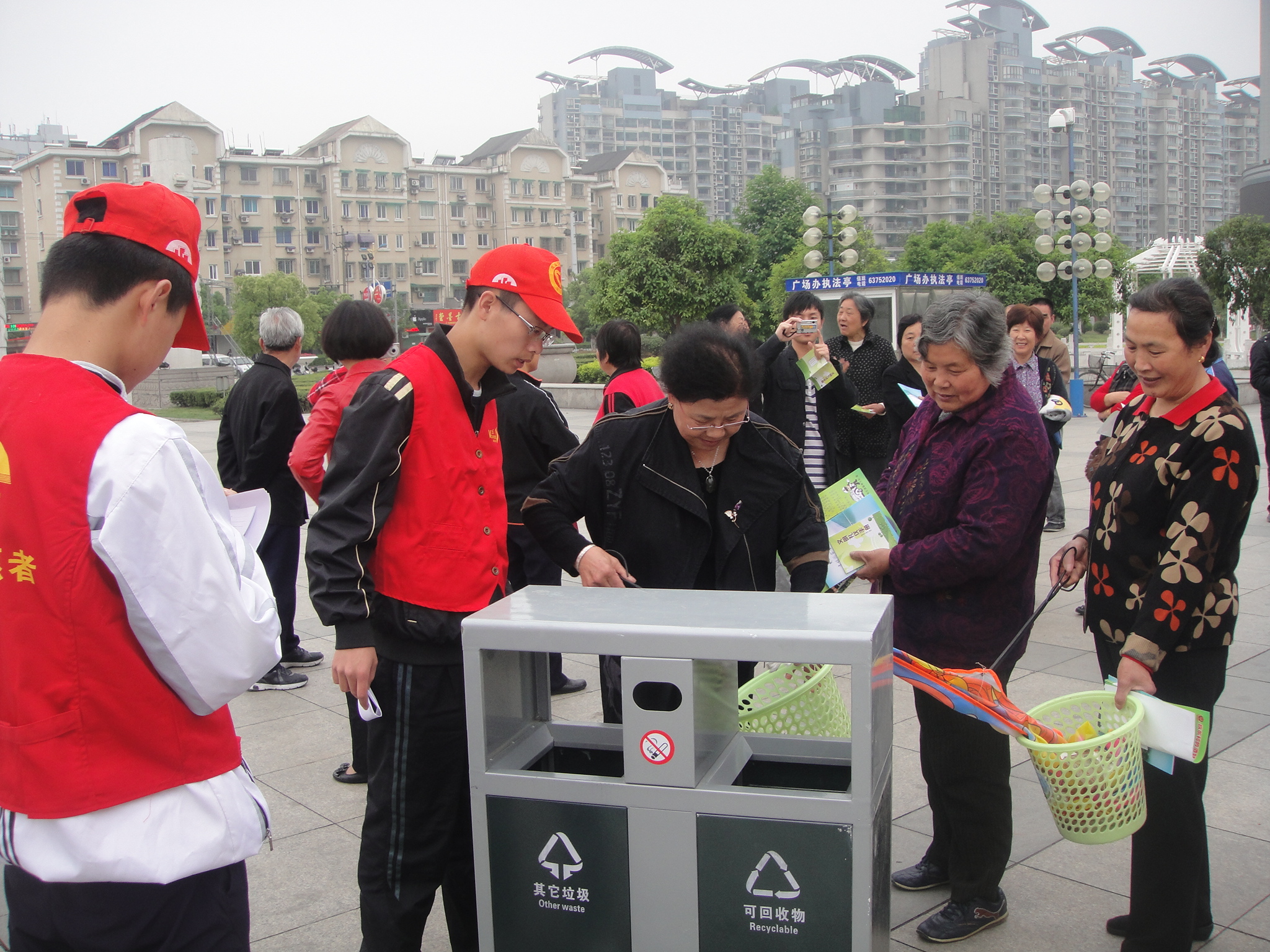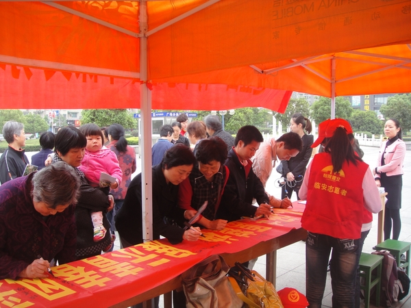 5月4日上午,由校团委和临安团市委共同主办的“弘扬志愿者精神,展示青春风采,环保文明我先行”暨迎“五四”青年志愿者环保文明宣传招募活动在临安市人民广场火热举行。校青协的志愿者们向市民们讲解环保文明知识,发放环保文明宣传手册,倡导低碳环保行为。市民们也停下脚步,拿起火钳、垃圾桶等工具,捡拾周边的垃圾并进行分类,亲身参与到环保行动中,争做环保志愿者。