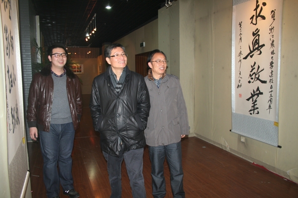 浙农林大新闻网讯 12月18日下午,校党委书记宣勇在校党委委员、工会主席汪士华的陪同下到东湖校区活动中心参观了由校工会主办、校教职工书画协会承办的“中国梦·农林情”纪念学校建校55周年教职工书画摄影展。